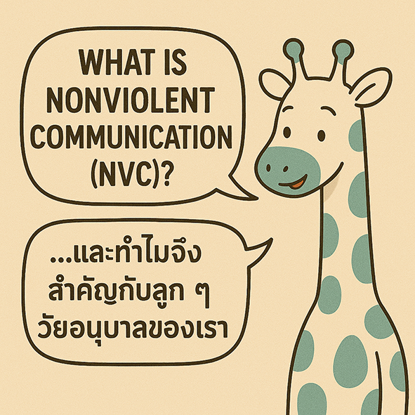 หนึ่งในวิธีสำคัญที่สุดที่ช่วยตอบ “คำถามในใจ” ของเด็กได้ คือ การใช้การสื่อสารอย่างสันติ (Nonviolent Communication: NVC) หรือที่หลายคนรู้จักในชื่อ “ภาษายีราฟ” (Giraffe Language — ภาษาแห่งการเชื่อมโยงหัวใจระหว่างกัน